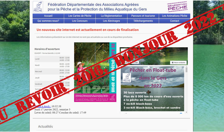 Parmi les autres grandes nouveautés, vous pourrez vous informer sur tous les parcours de pêche que nous proposons en lac, avec une fiche dédiée à chaque lac. Via le bandeau en haut de chaque page, vous aurez un accès direct aux sites de toutes les fédérations de pêche de France. Pour le reste, nous vous laissons découvrir.